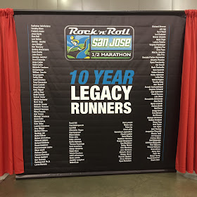 This was the 10th year for Rock n Roll San Jose. We've raced here 6 times, 3 of them resulted in Ron's fastest race of the year. The course hasn't changed in a while. It's flat other than a few underpasses with long stretches of straight road, ideal for a PR race. The addition of the 10K race staring at the same time as the half created a little congestion in the first few miles, but didn't seem to affect the race as a whole. Temperatures for RNR San Jose have ranged from the low to high 60s at race start and finish in the mid to high 70's.